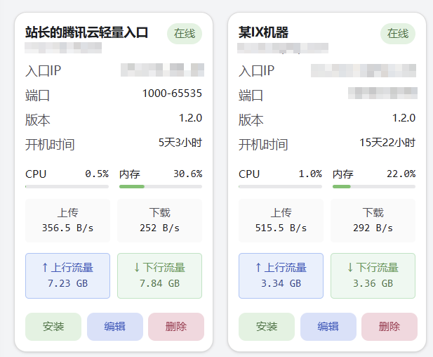 - 入口机:在IX场景下,又习惯称之为前置机,部署在国内的服务器,通常是腾讯云、阿里云等大厂的轻量应用服务器,它将作为流量的入口,只有通过它才能访问到IX机。强烈建议入口机自行DD使用纯净的新系统。入口机需要被面板端控制(安装Agent)。