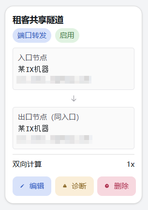 - 点击“创建”。此时,你会在隧道管理页面看到一个新的隧道,它的入口和出口节点都是你的IX机。这个“隧道”现在就是一个准备好为租客们分配端口的“资源池”。