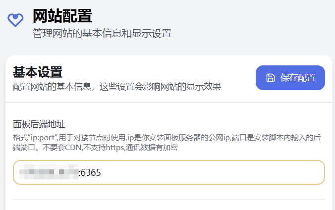 后续会需要从面板生成和复制安装命令(给节点机器使用),因此需要先明确设置当前面板所在机器的IP和端口信息。